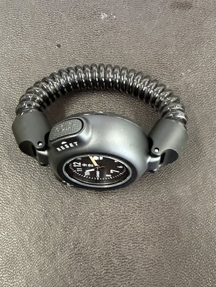 ロッカーキーと同じカールバンド仕様で、サウナ内でも邪魔にならず、12分計を備え、100度以内の高温下で15分以内の使用を想定した設計。