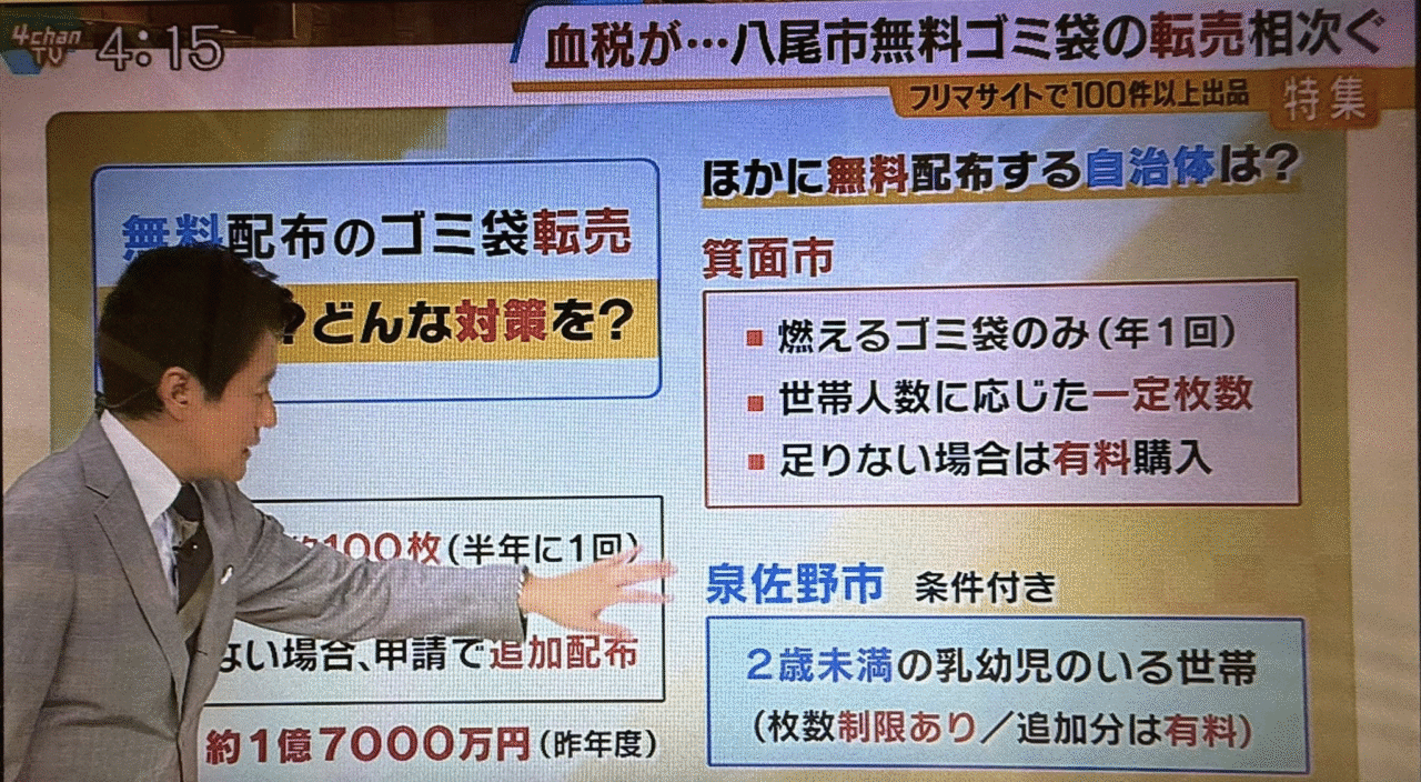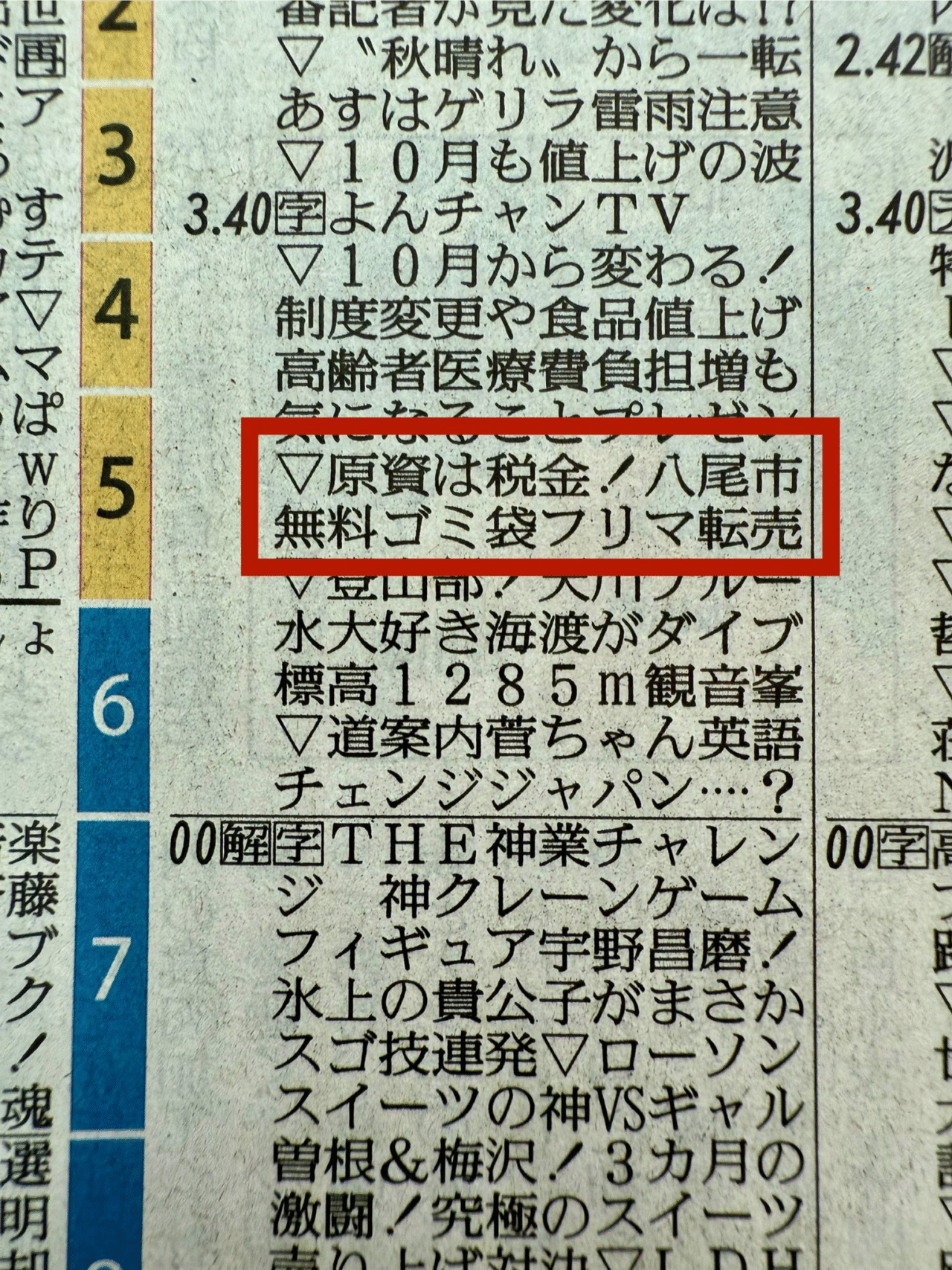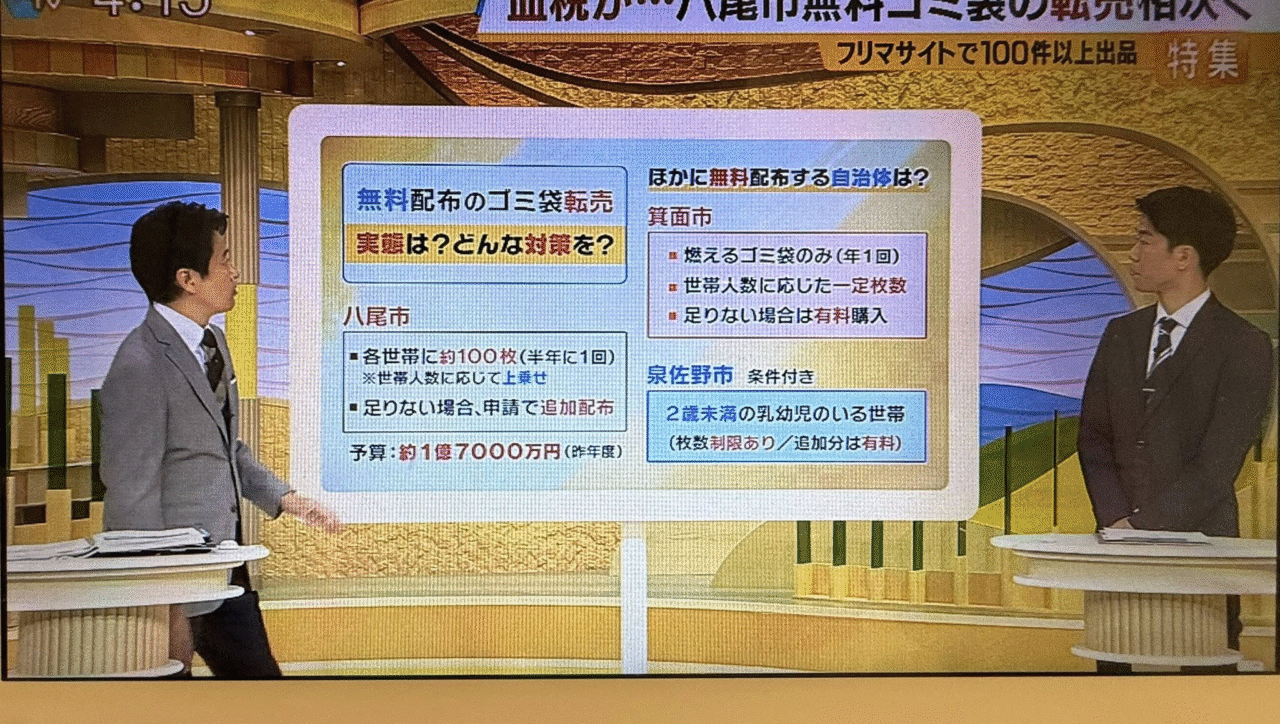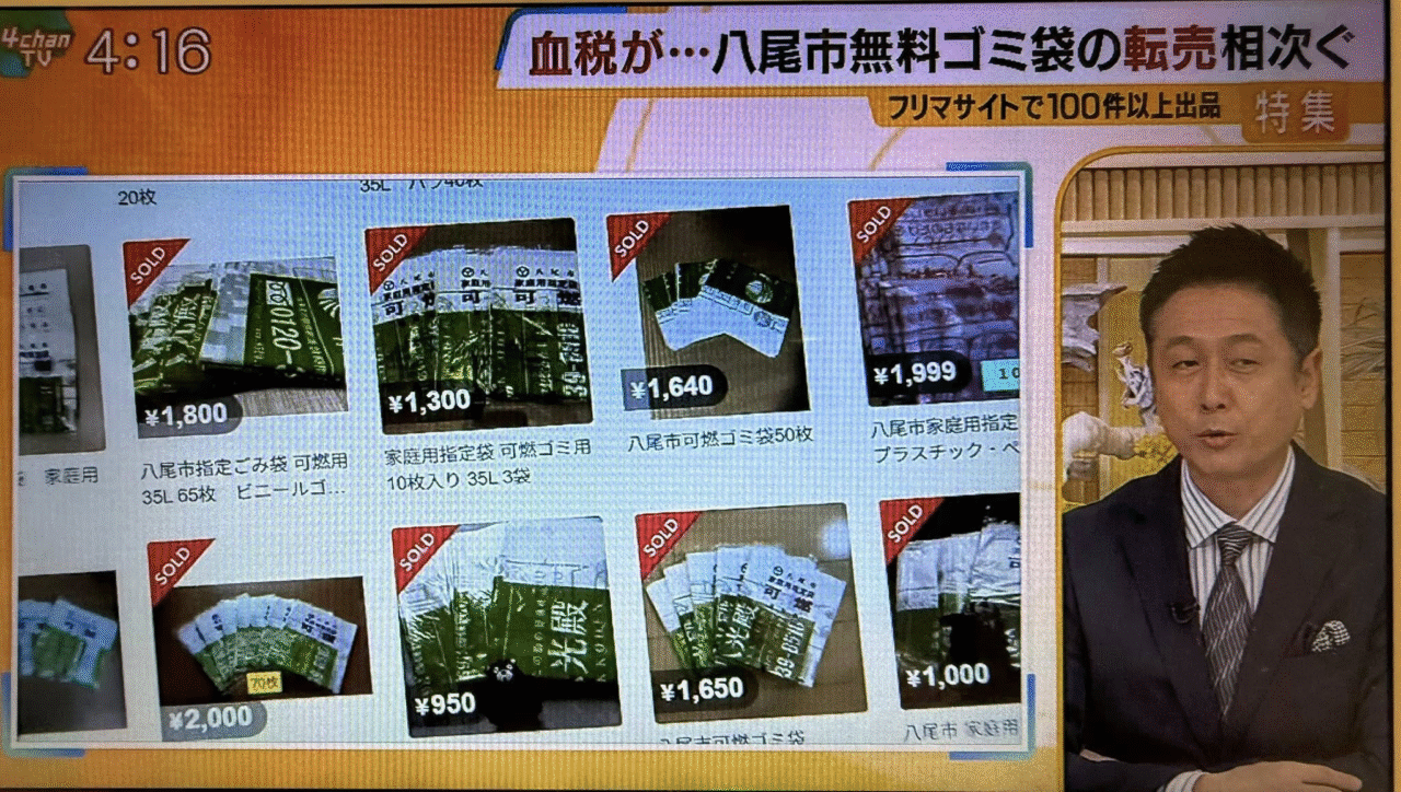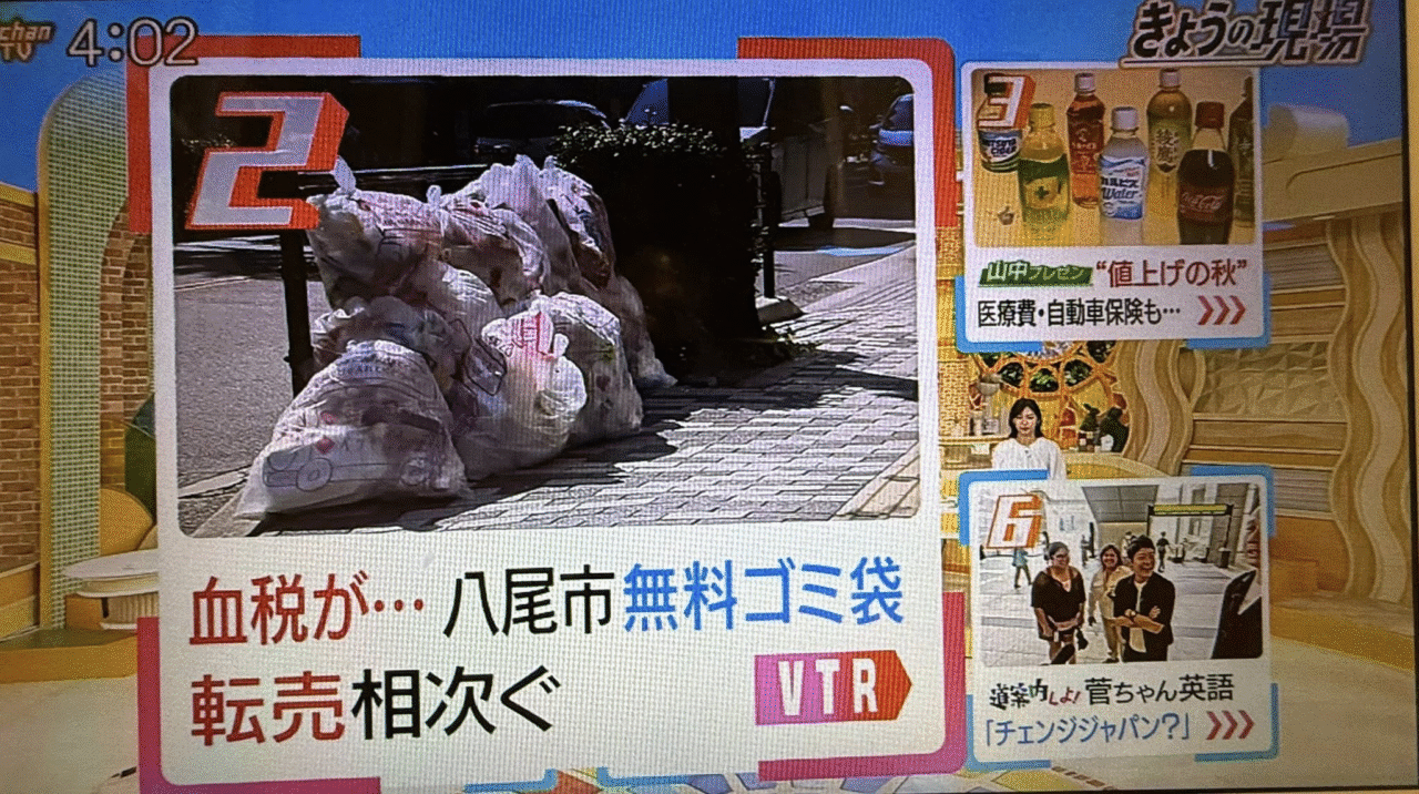 昨日、MBS「よんチャンTV」で6月議会に私が質問した「八尾のごみ袋がメルカリ等で転売されている件」が「特集」として放送されました!