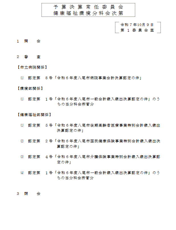 市立病院関係、環境部関係、健康福祉関係と審査しましたが、注目は介護保険事業特別会計歳入歳出決算認定の件で、八尾市の「不適切な事務処理」について追及いたしました。